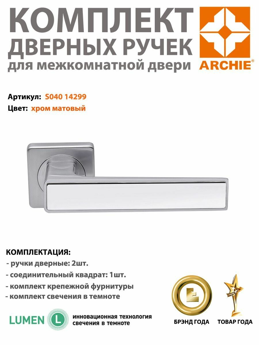 ARCHIE Ручки дверные фалевые межкомнатные на квадратной накладке S040 14299 940000001336