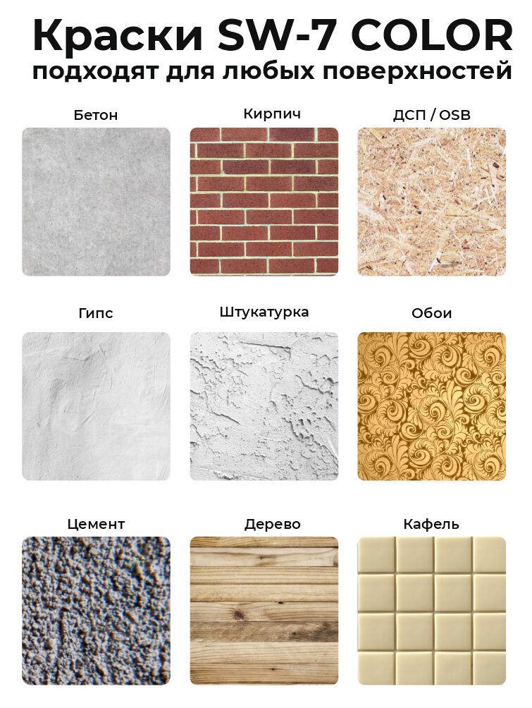 Краска для обоев, стен и потолков TURY SW-7 Colour акриловая моющаяся быстросохнущая матовая, без запаха, цвет Графит, 2.4 кг