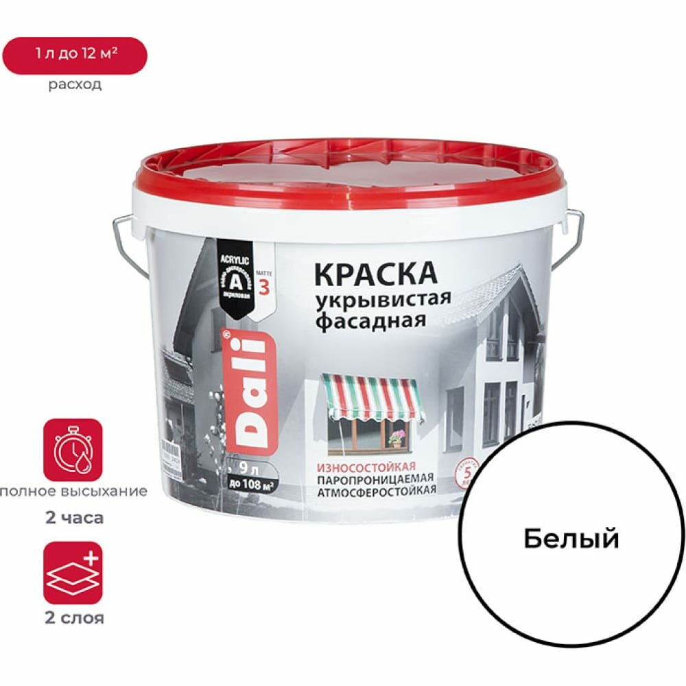 Dali / Дали краска Укрывистая фасадная акриловая 9л