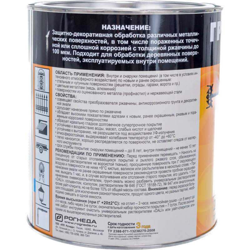 Рогнеда DALI грунт-эмаль по ржавчине 3в1 гладкая, RAL 9010, белый (0,75л)