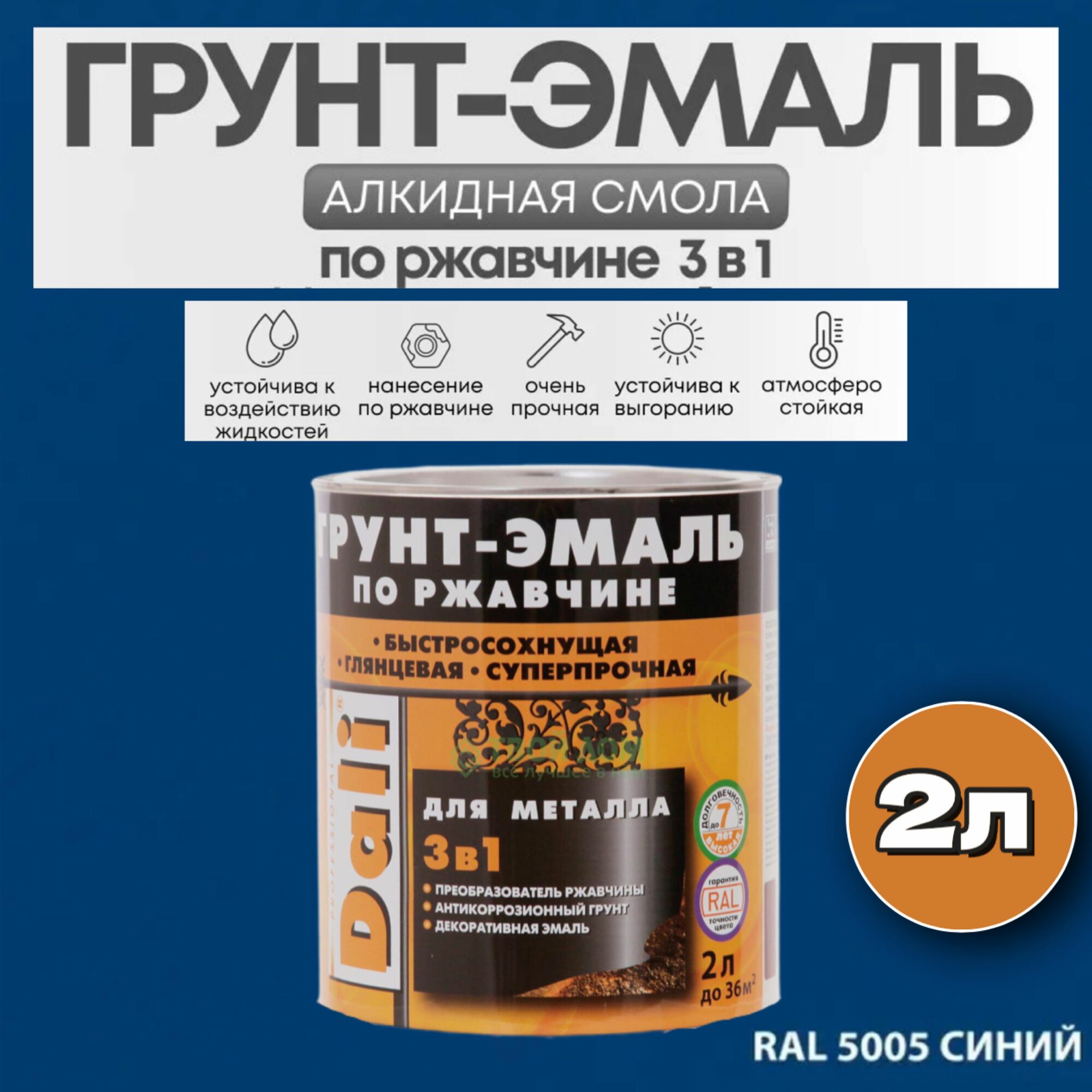 Купить DALI грунт- эмаль ПО ржавчине 3 В 1 синяя RAL 5005 2 Л 3 41770