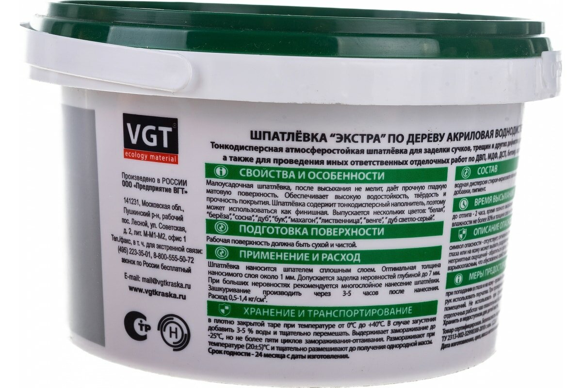 Шпатлевка по Дереву VGT Экстра 1кг Берёза Акриловая, Универсальная / ВГТ Экстра.