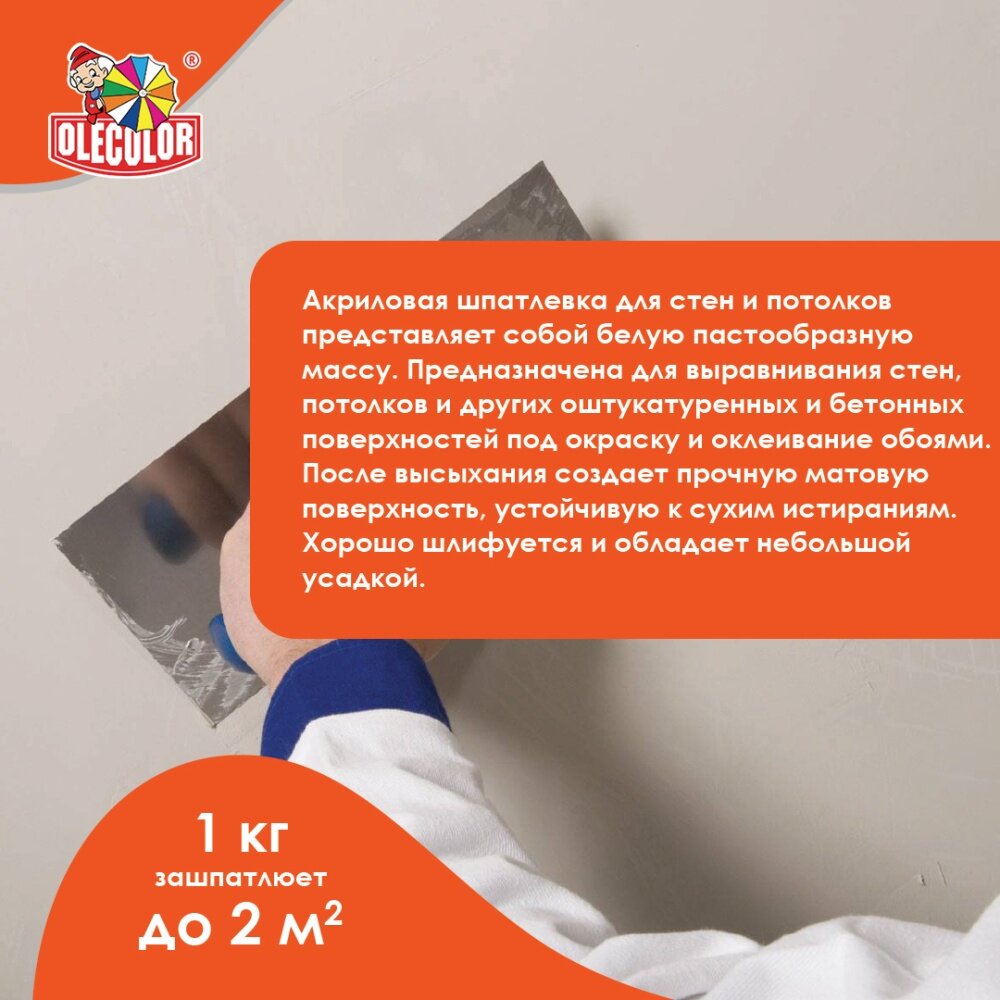 OLECOLOR Шпатлевка акриловая для стен и потолков (1.8 кг) 4300000136