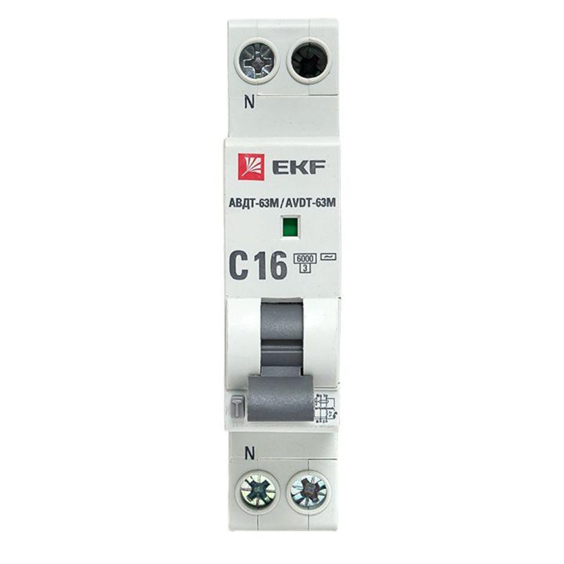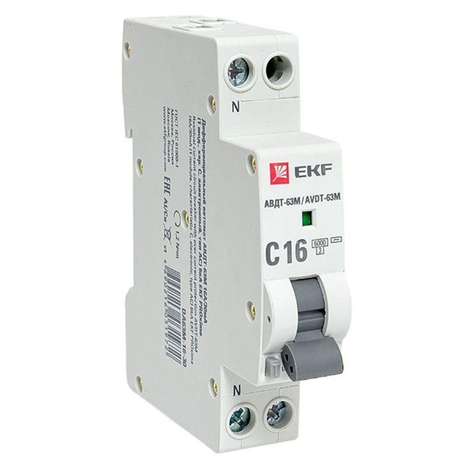 Дифференциальный автоматический выключатель EKF PROxima АВДТ-63М, 16А, С, 30мА, тип AС, 6кА, электронный