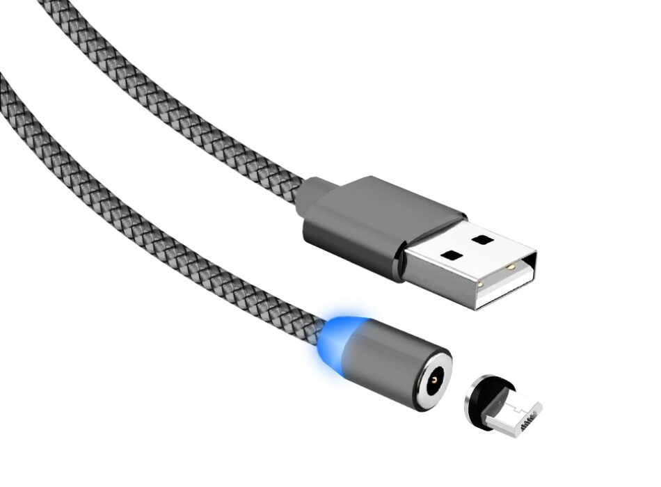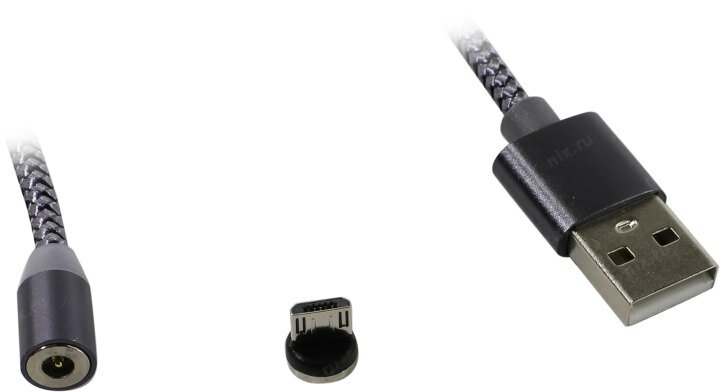 Jet.A (JA-DC26 1м Gray) Кабель питания USB AM-)съёмный магнитный USB micro-B 1м