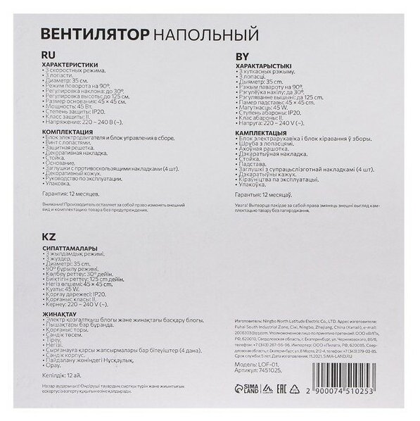 Напольный вентилятор Luazon LOF-01, 45 Вт, 3 режима, бело-синий (арт. 7451025) интересное: