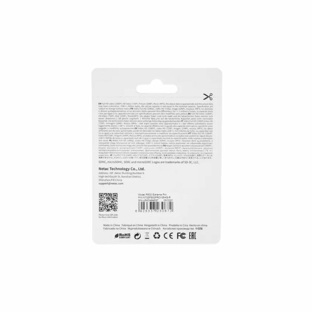 MicroSDHC 64Gb Netac P500 Extreme Pro A1 V10 Class 10 Uhs-i (u1), Nt02p500pro-064g-r, R100Mb/s, SD а .