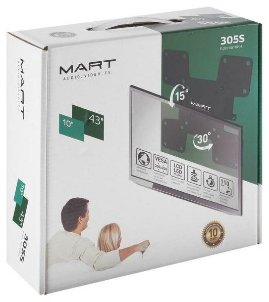 Кронштейны для техники MART Кронштейн настенный MART 305S 10-49" (наклон -15°/+15°, поворот -30/+30, до 25 кг, черный)