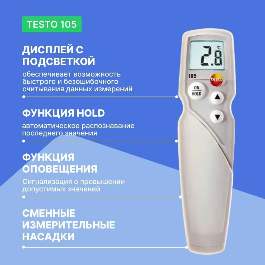 Купить Термометр Testo 105 для пищевого сектора с термощупом 10 см, Госреестр СИ