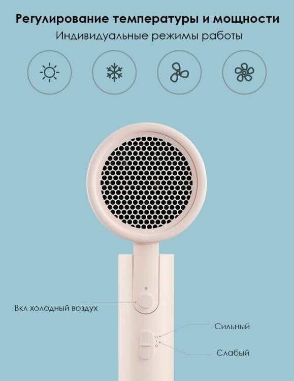 Портативный фен для волос Mijia Ionic Hair Dryer H101 CMJ04LXP (By Xiaomi) 15 м/с до 50 млн отрицательных ионов CN розовый