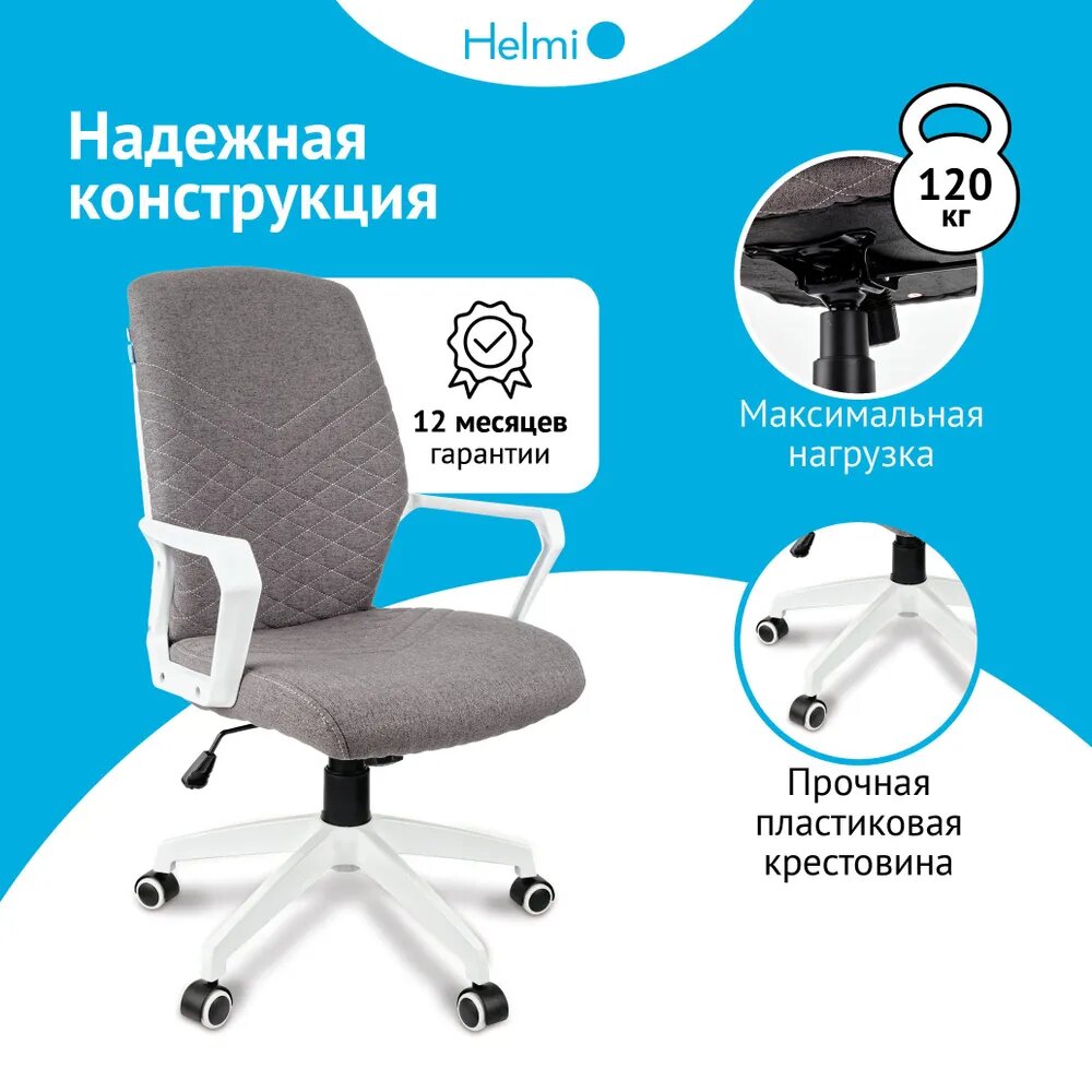 Компьютерное офисное кресло (стул) с подлокотниками Helmi HL-М05 "Ambition", ткань серая, пластик белый, механизм качания