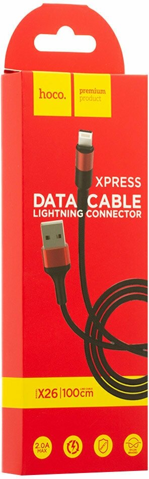 Кабель Hoco X26 Xpress, USB - Lightning, 1 м, 1 шт., черный/красный