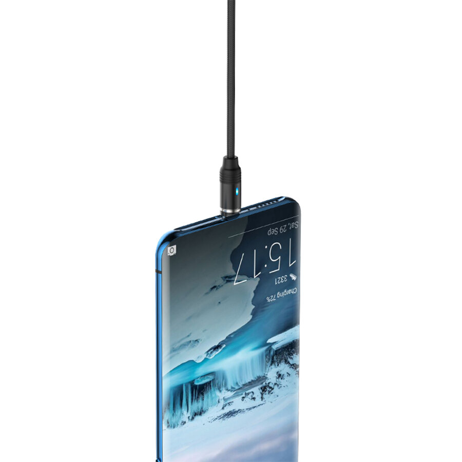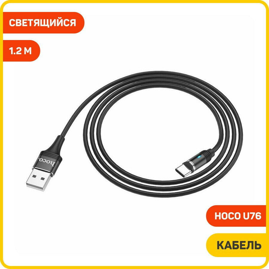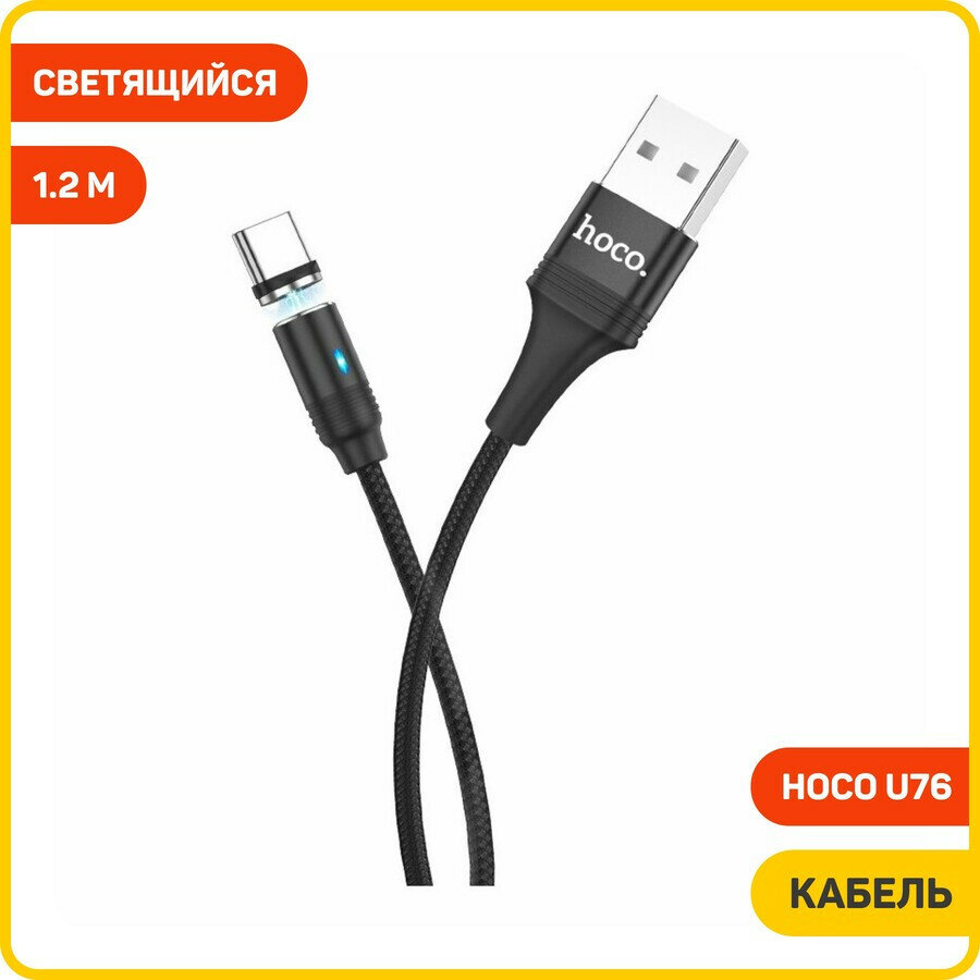 Кабель USB - USB Type-C HOCO U76, 3A черный 1,2м (магнитный, в оплетке, LED индикатор)