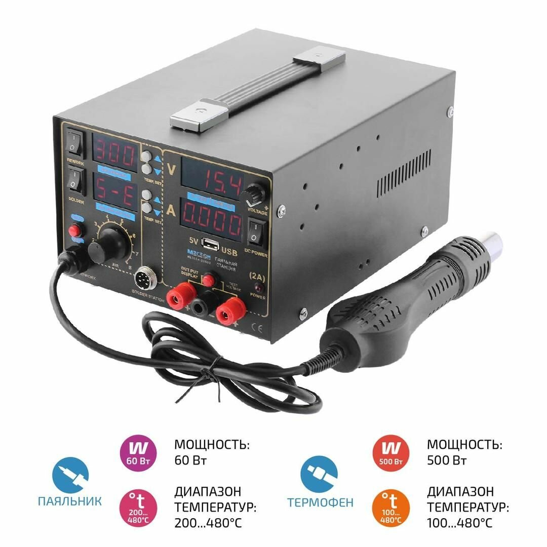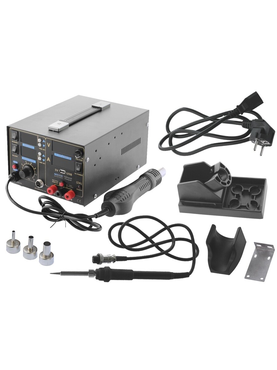 Паяльная станция с термофеном и источником питания 3 в 1 мегеон 00503