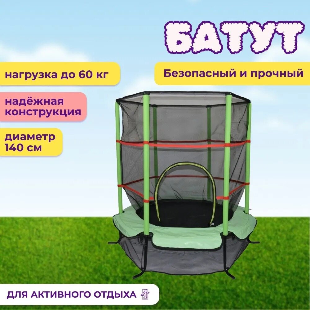 Детский батут с сеткой 140 см зеленый