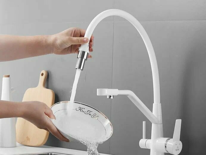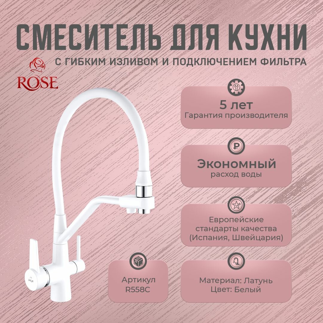 СохранитьСмесители для кухни с гибким изливом и подключением фильтра ROSE R558C (латунь, цвет белый) интересное: