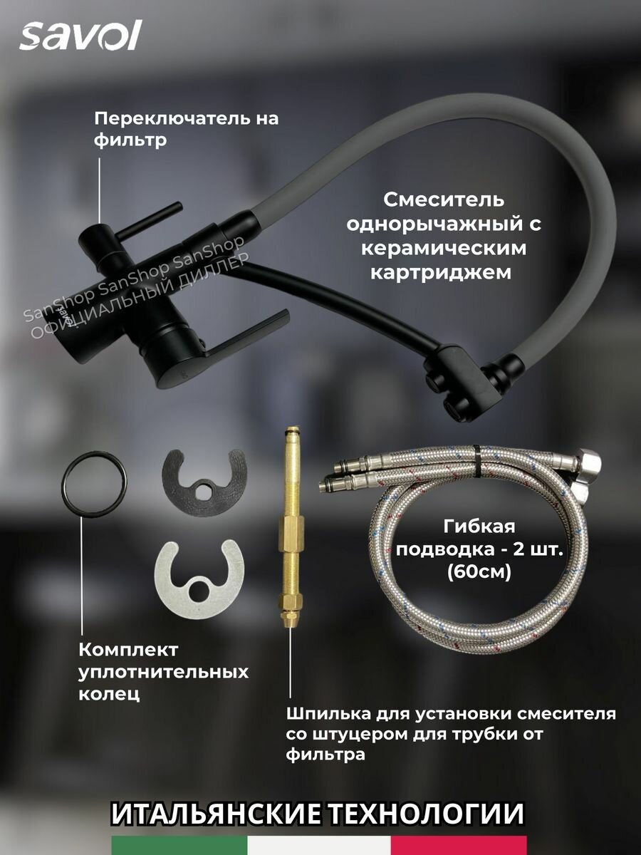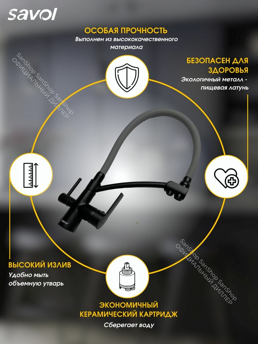 Savol Смеситель для кухни с отводом под фильтр, черный излив S-L1805-01 Savol