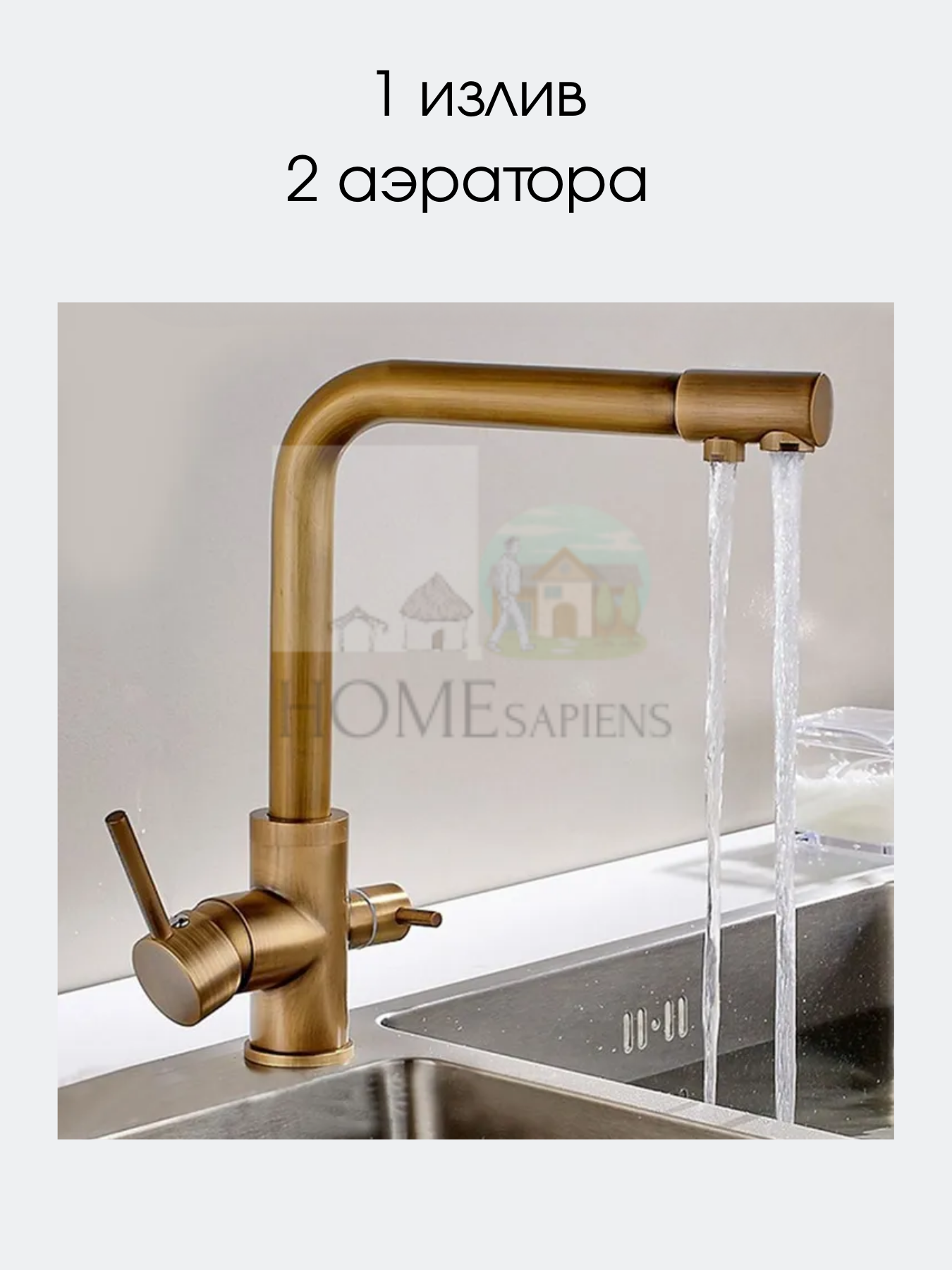 СохранитьСмеситель для кухни Matrix SM-323607-BZ Ретро Бронза, 2 в 1 интересное: