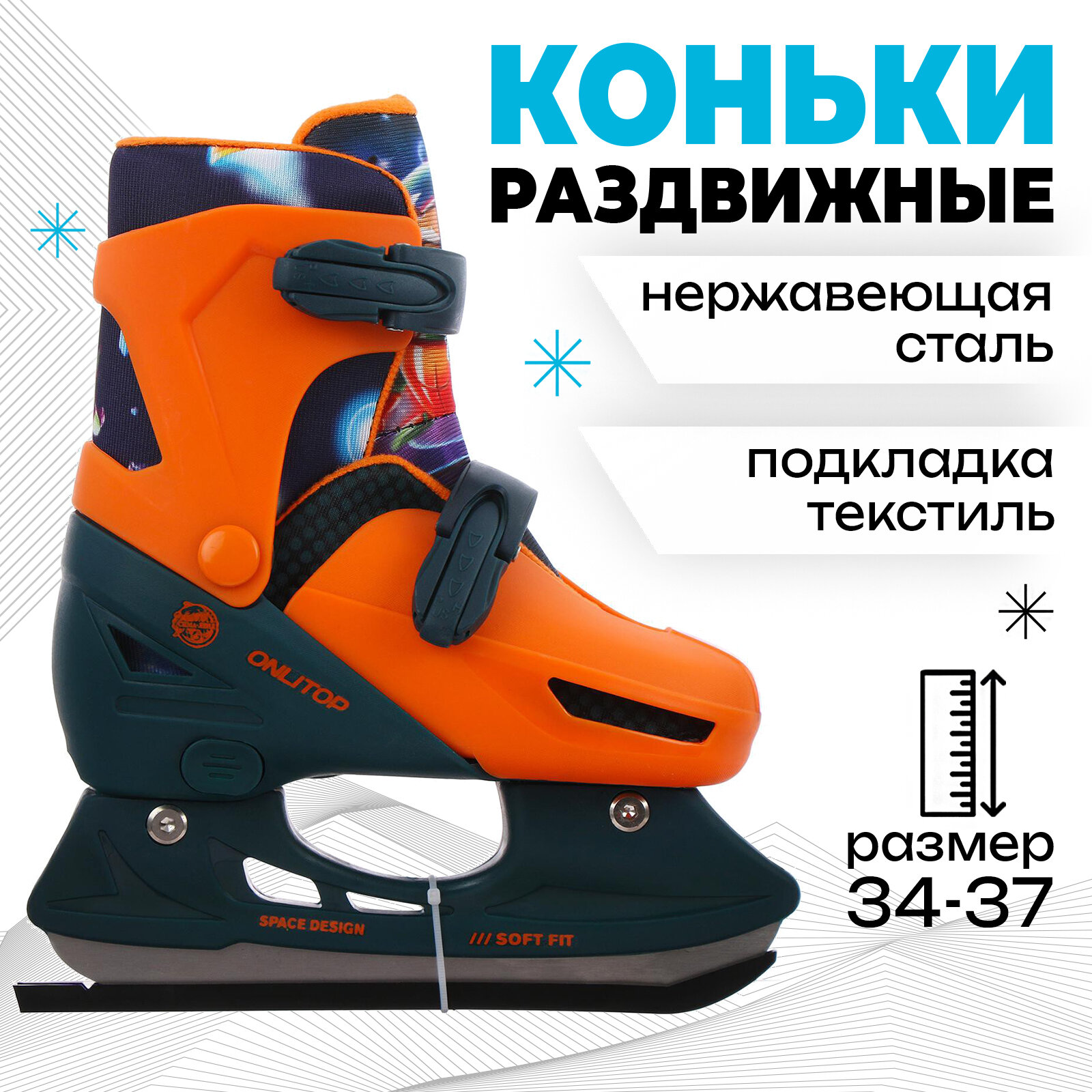 ONLITOP Коньки ледовые детские раздвижные «Космос» 223E, текстиль, пластик, размер 34-37