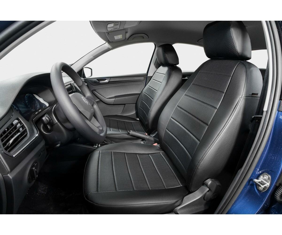 Авточехлы Rival Строчка (зад. спинка 40/60) для сидений Skoda Rapid I, II лифтбек (без заднего подлокотника) 2013-2020 2020-н.в./Volkswagen Polo VI лифтбек (без заднего подлокотника) 2020-н.в., эко-кожа, черные, SC.5101.1