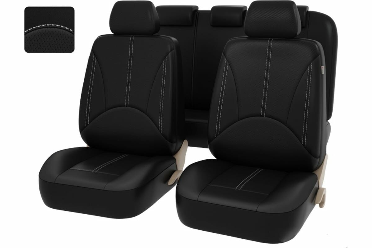 Чехлы на сидения автомобиля PSV, комплект в машину King Next, Черная экокожа с черной строчкой