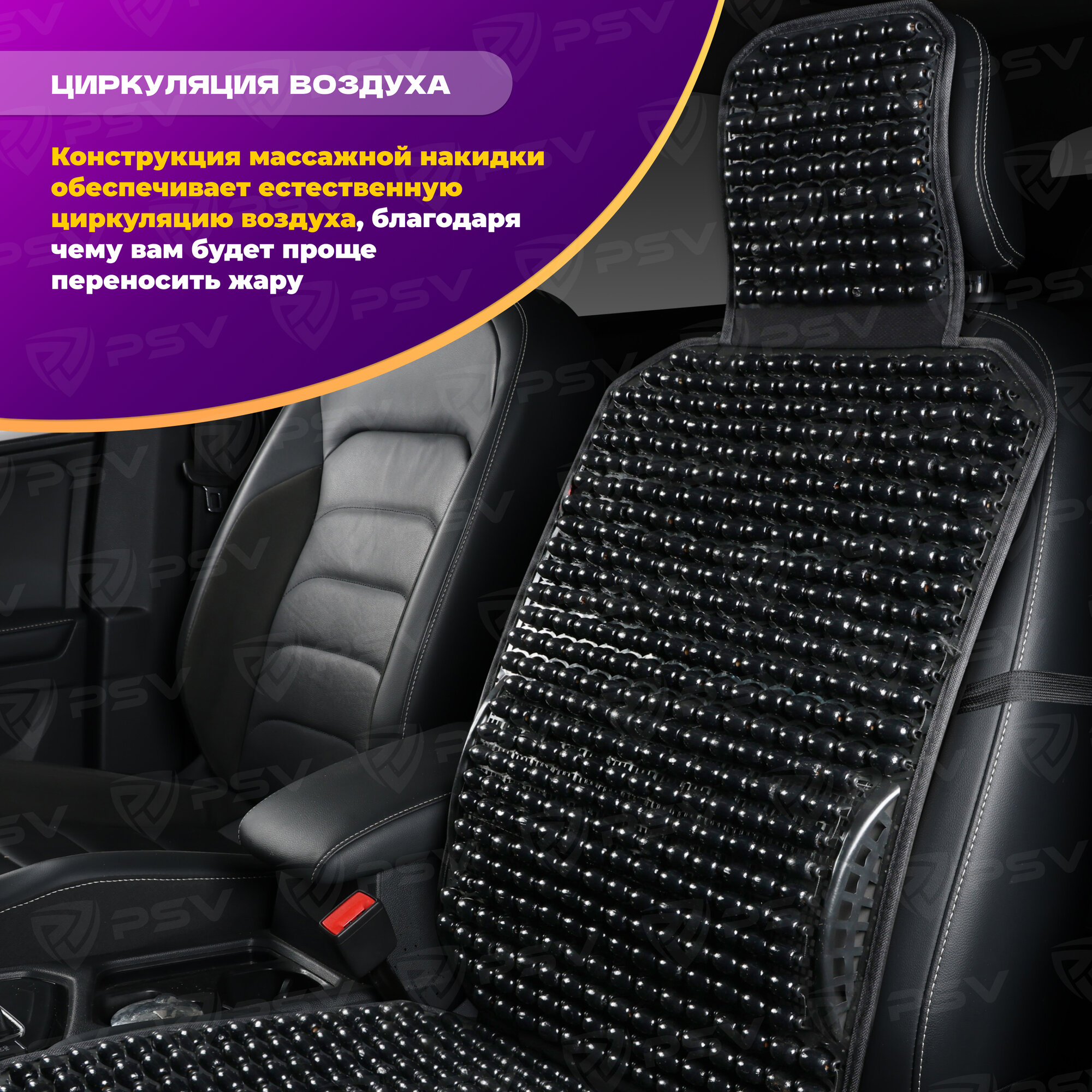PSV 137158 Накидка на сиденье массажная деревянные шарики PSV 2010 большая с поддержкой черная