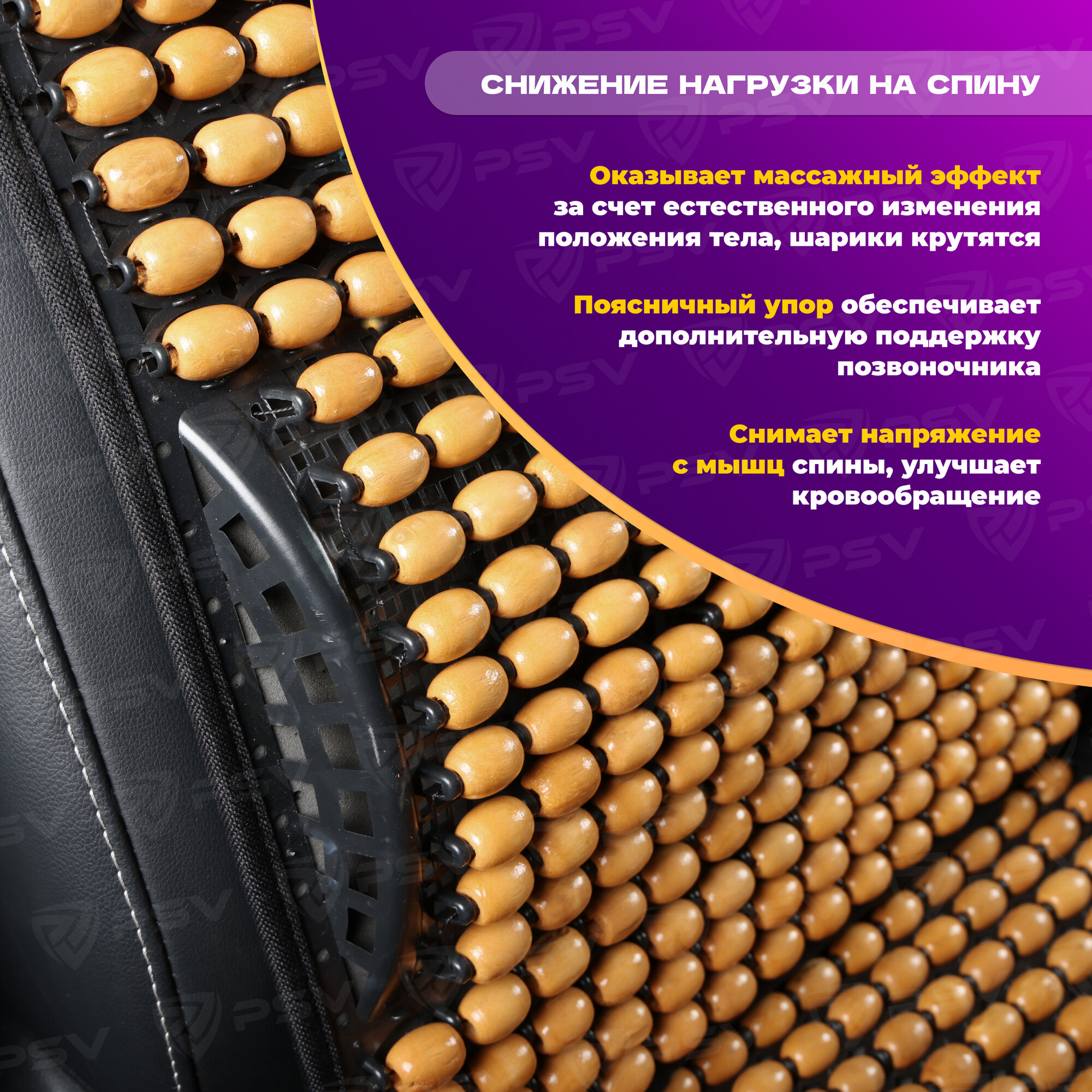 PSV 137158 Накидка на сиденье массажная деревянные шарики PSV 2010 большая с поддержкой черная
