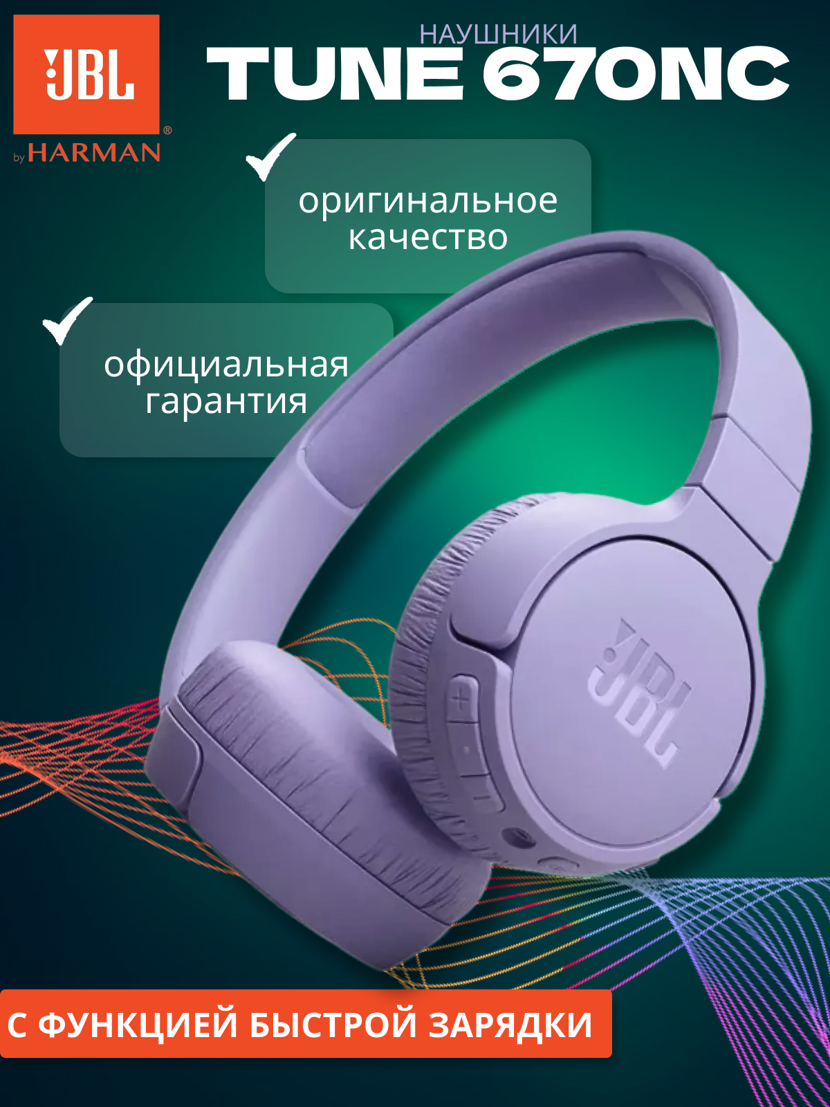 Наушники JBL Tune 670NC, Bluetooth, накладные, фиолетовый [jblt670ncpur]