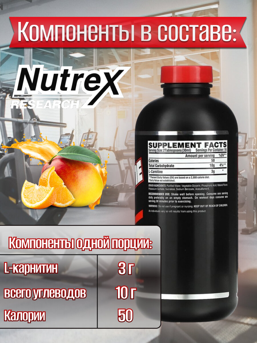 Nutrex Liquid Carnitine 3000, Л Карнитин, жидкий 465 мл со вкусом Апельсин - Манго, Спортивное питание, жиросжигатель для похудения, для выносливости