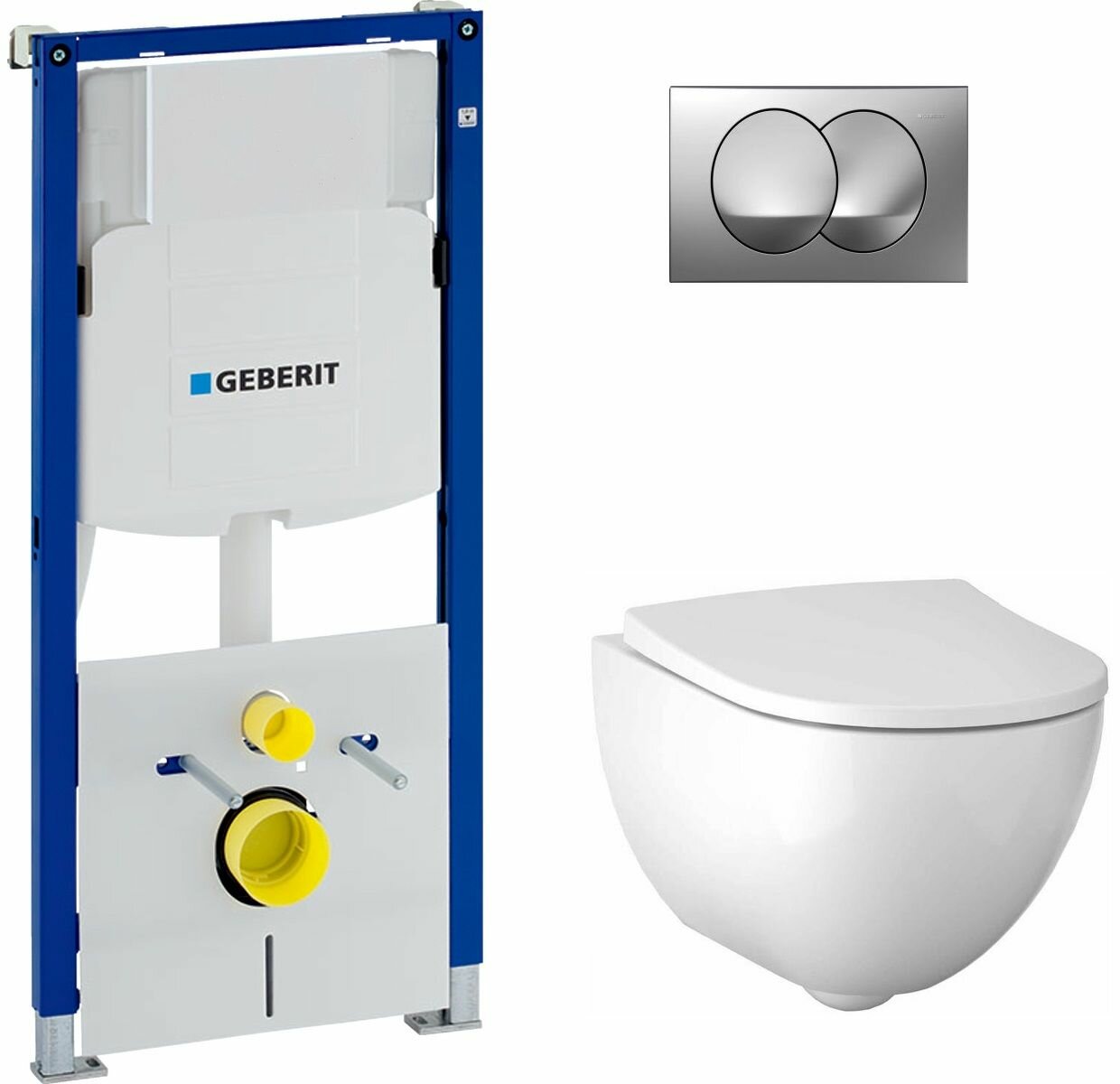 Комплект инсталляции Geberit Sigma с кнопкой смыва с подвесным унитазом Geberit Acanto 500.301.KJ.A