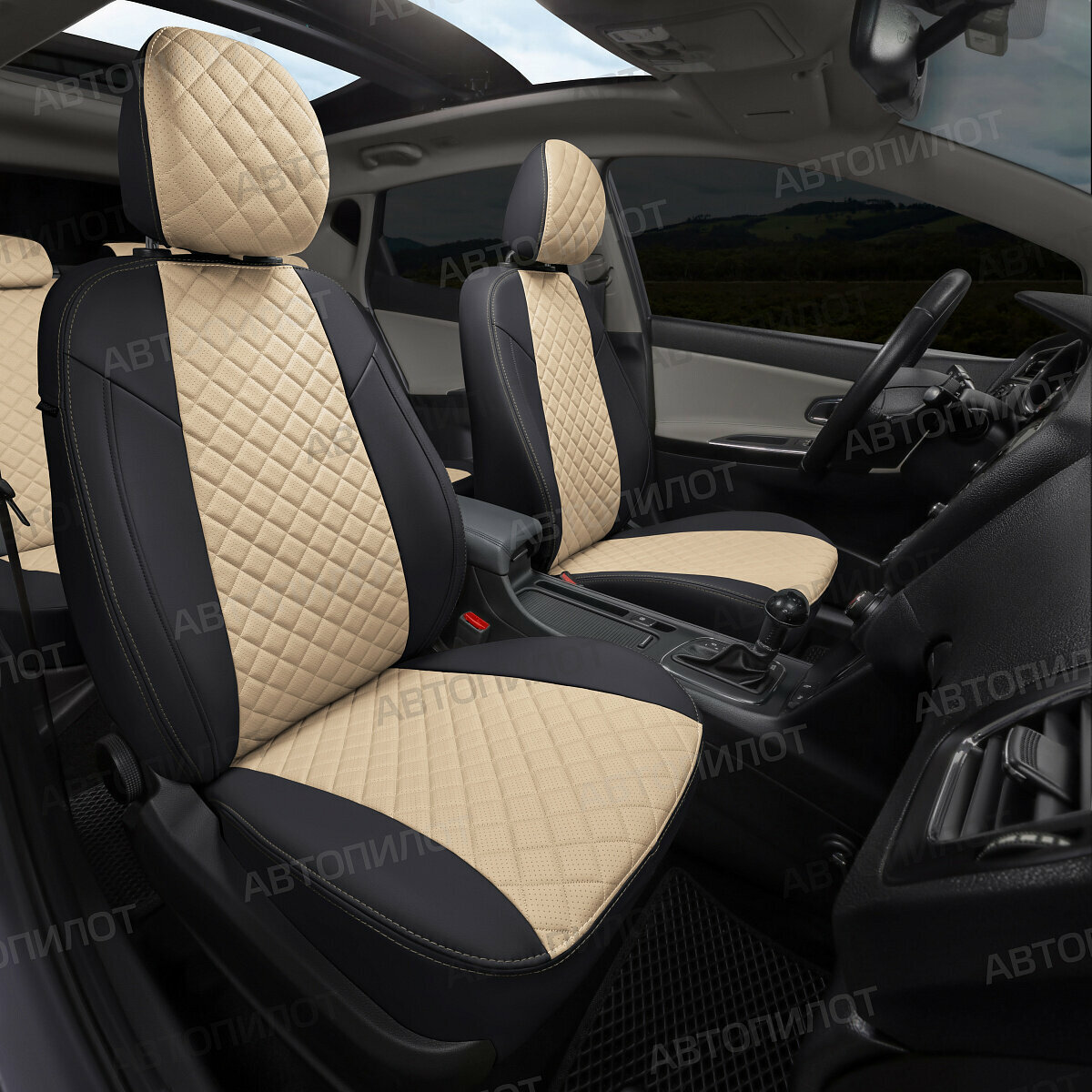 Комплект чехлов Автопилот Экокожа Skoda Octavia A-7 Elegance (с подлокотником) Hb/Wag с 1 Черный + Бежевый