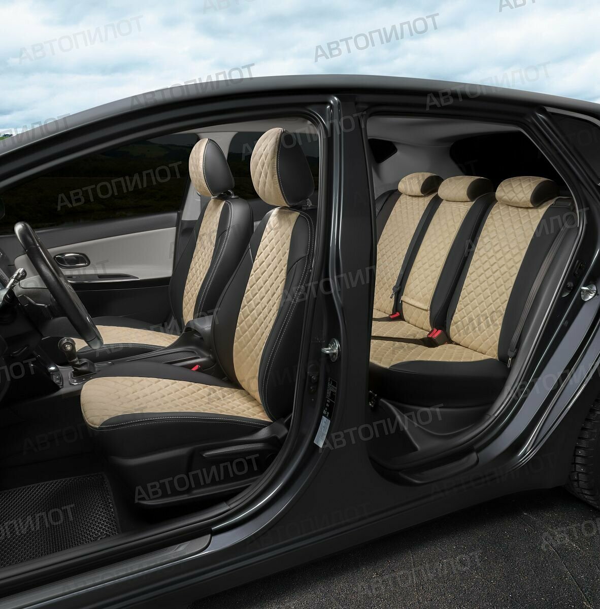 Комплект чехлов Автопилот Ромб Skoda Octavia A-7 Elegance (с подлокотником) Hb/Wag с 1 Черный + Бежевый