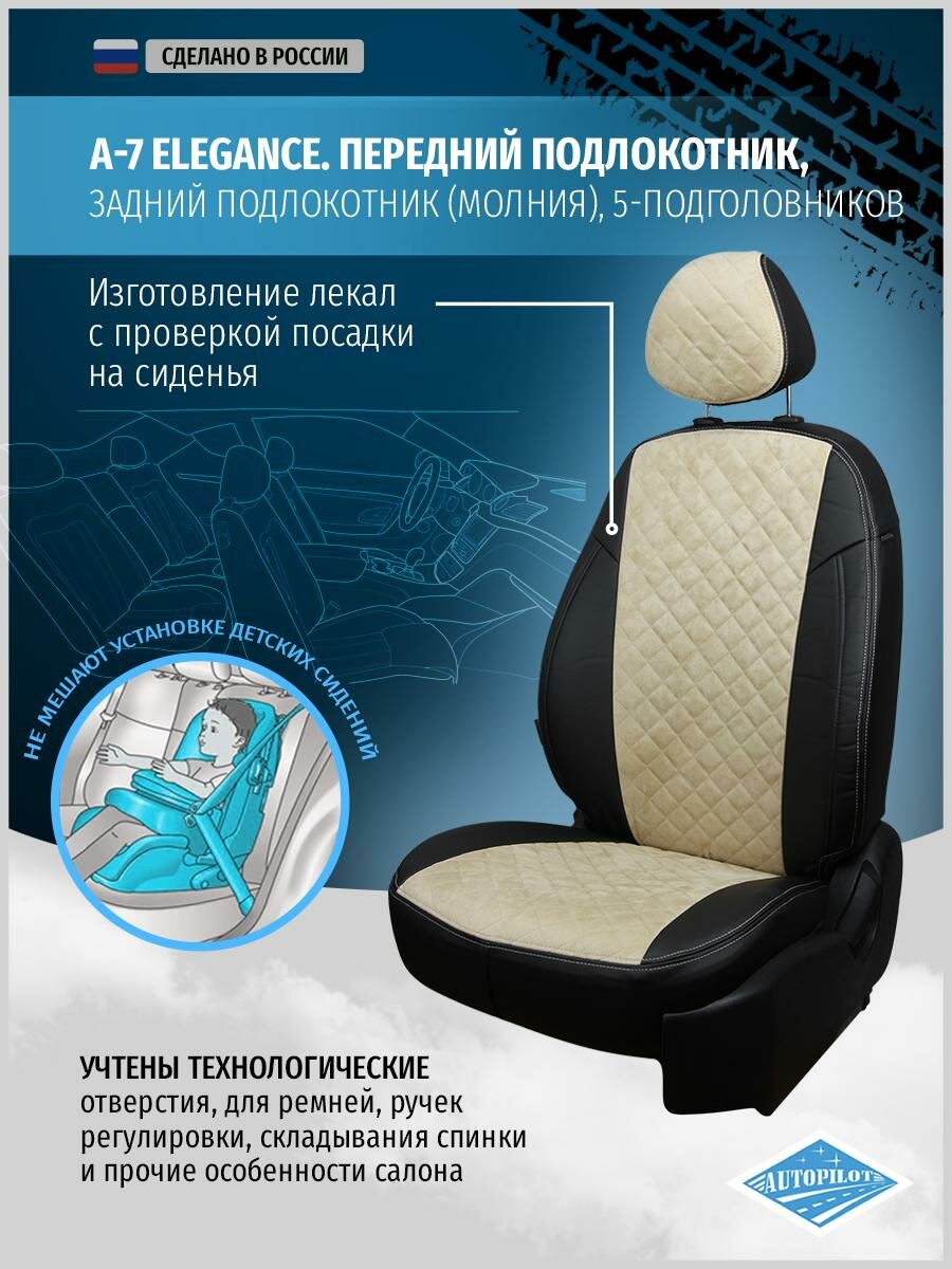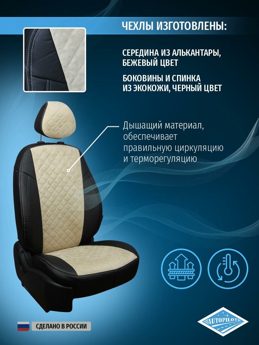 Купить Комплект чехлов Автопилот Алькантара ромб Skoda Octavia A-7 Elegance (с подлокотником) Hb/Wag с 1 Черный + Бежевый