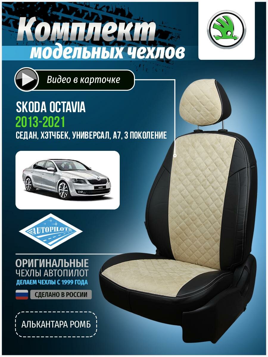 СохранитьКомплект чехлов Автопилот Алькантара ромб Skoda Octavia A-7 Elegance (с подлокотником) Hb/Wag с 1 Черный + Бежевый интересное: