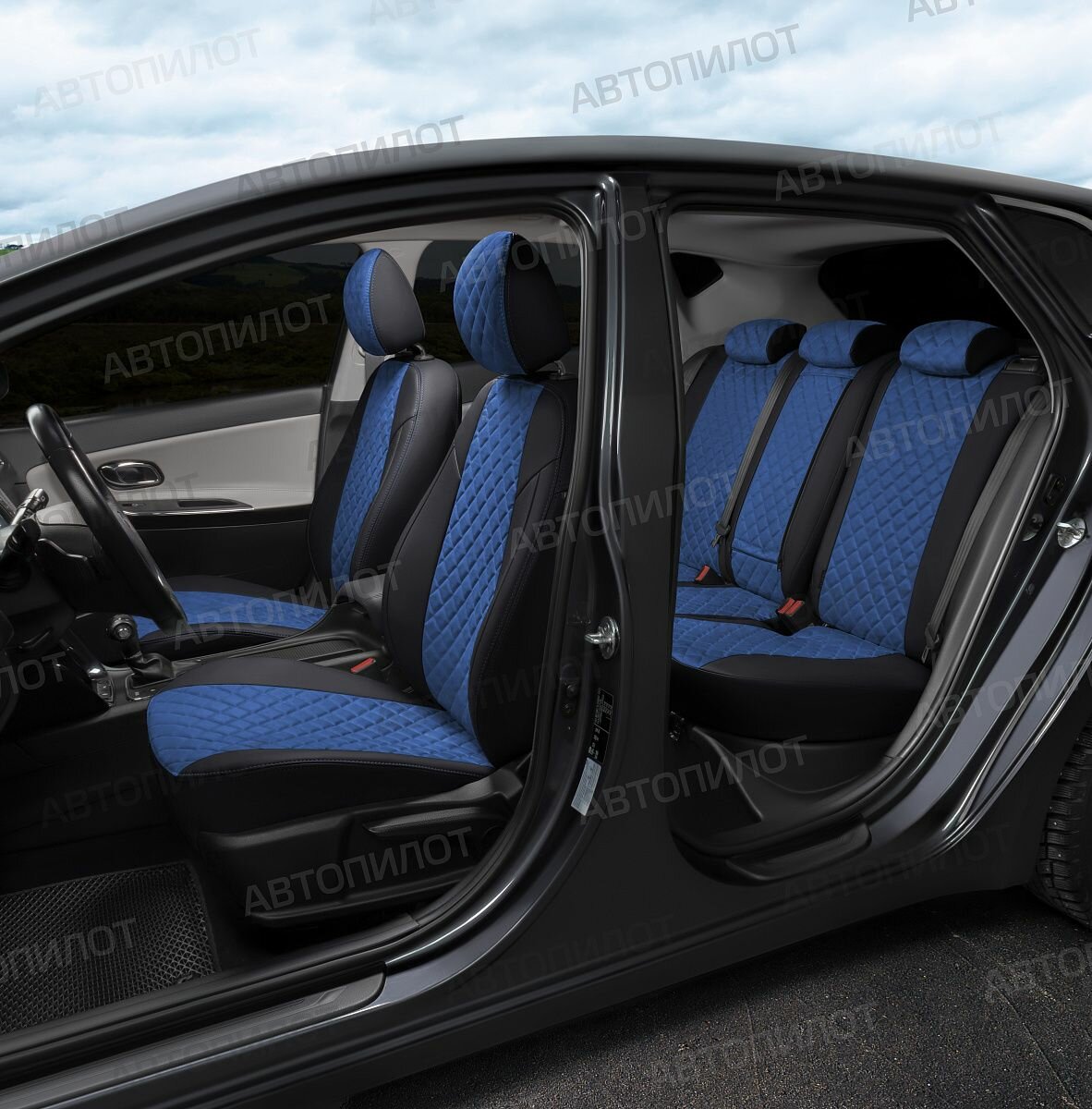 Комплект чехлов Автопилот Алькантара ромб Skoda Octavia A-7 Elegance (с подлокотником) Hb/Wag с 1 Черный + Синий