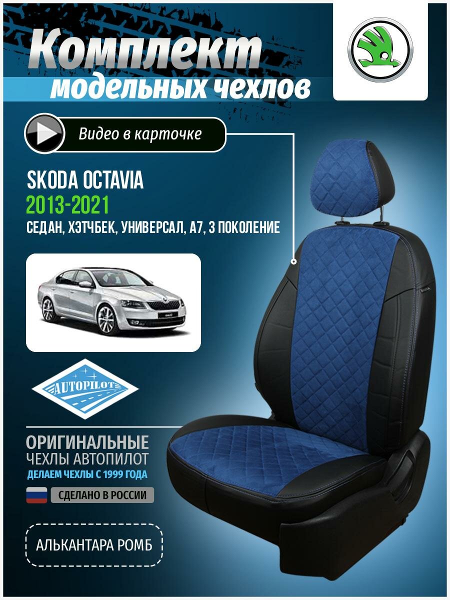 Купить Авточехлы для Skoda Octavia 3 A7 2013-2020 Автопилот Синий Алькантара с ромбом sk-ok-a7e-chesi-ar