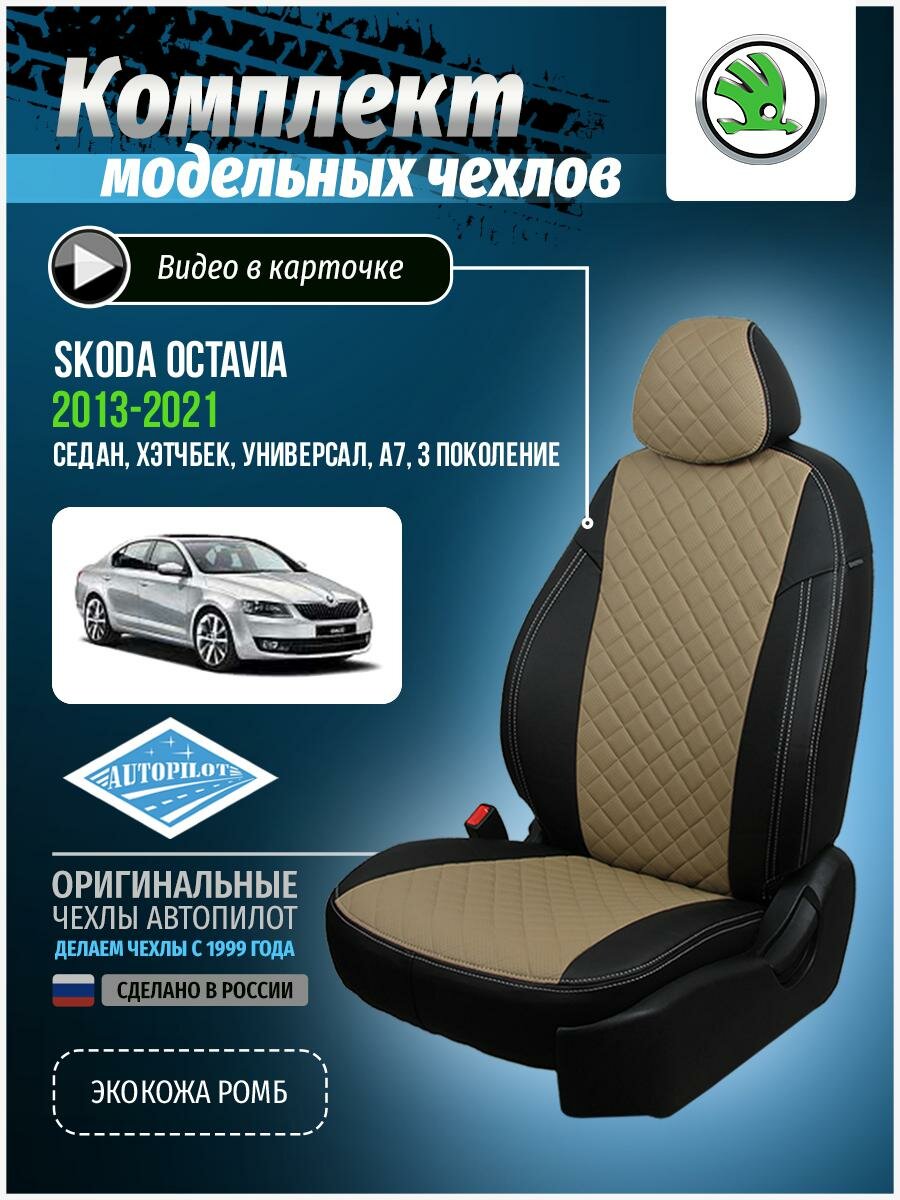 Авточехлы для Skoda Octavia 3 A7 2013-2020 Автопилот Темно-Бежевый Экокожа sk-ok-a7e-chetb-e