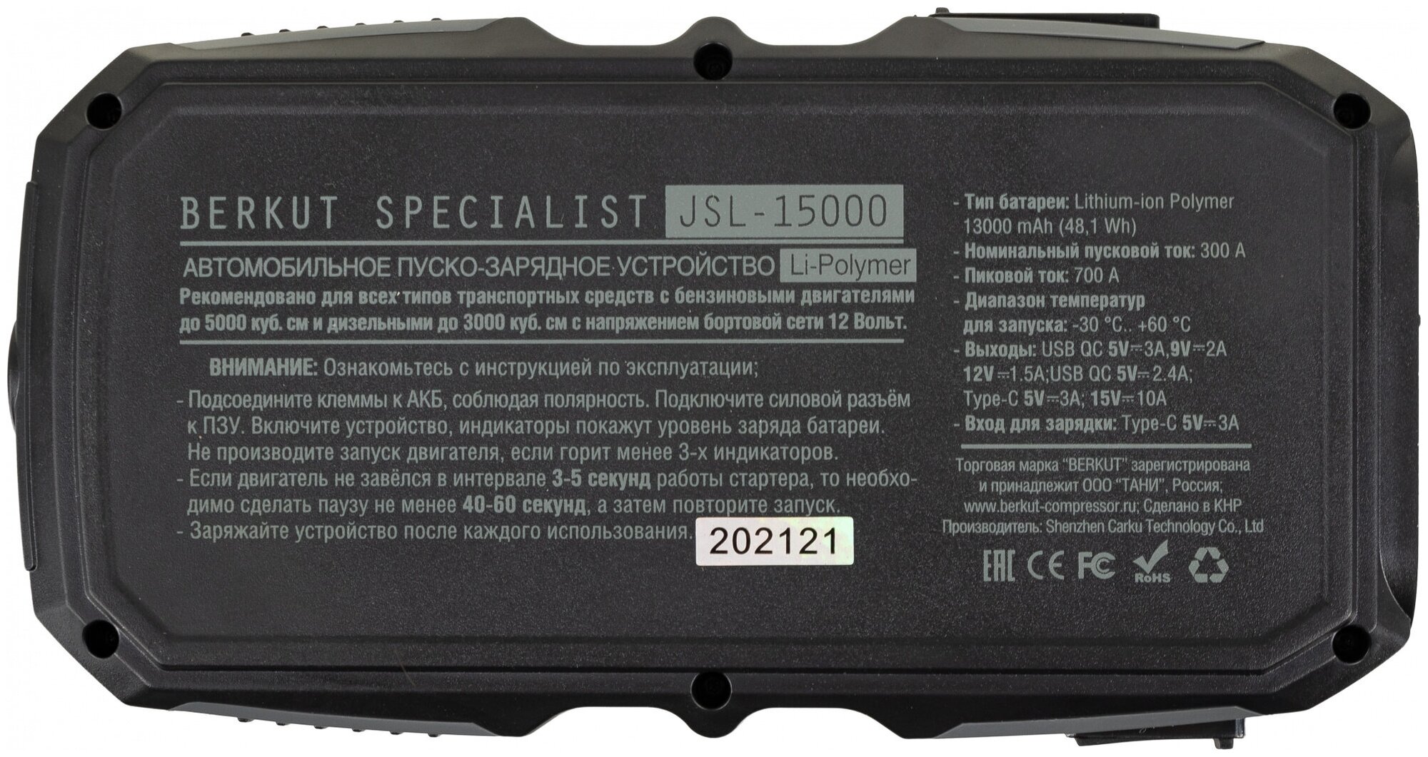 Купить Устройство зарядно-пусковое автономное (бустер) BERKUT JSL-15000 12В, 300А, пиковый ток 700А, Li-Po 3200 мАч х 4 (4 Cell электротовар