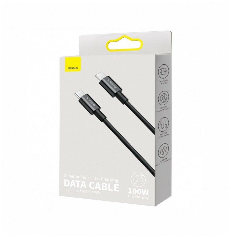 Кабель для быстрой зарядки Baseus Superior Series Fast Charging, Type-C to Type-C, 100W, 2м, Черный, CATYS-C01