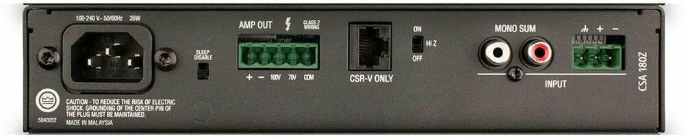 JBL CSA180Z усилитель мощности 80Вт, 4/8Ω. 70/100В Входы - 1 балансный (Phoenix), 1 небалансный (RCA