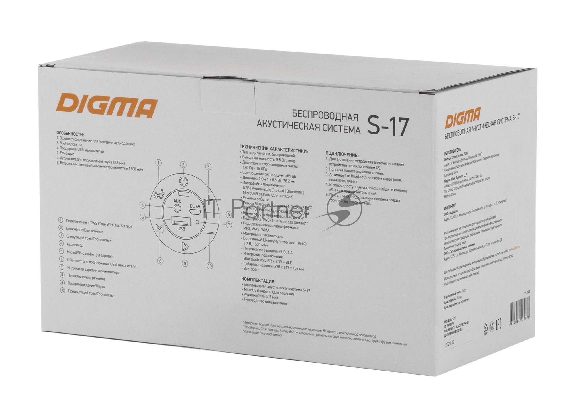 Ниже Вы можете прочитать отзывы на Колонка портативная Digma S-17, 8.5Вт, черный, ознакомится с подробными характеристиками, посмотреть интересные обзоры и фотографии на Колонка портативная Digma S-17, 8.5Вт, черный.