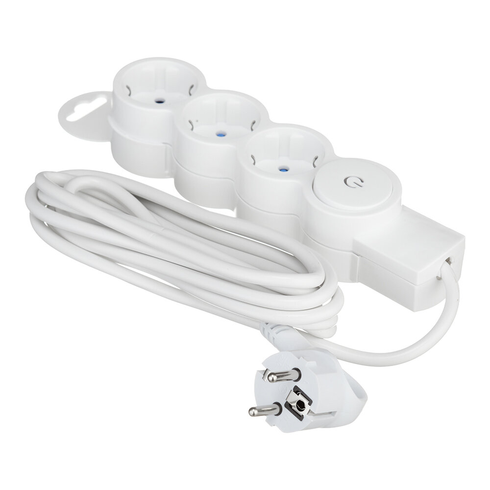 Удлинитель Düwi 3 розетки 3 м ПВС 3х0,75 мм2 10 А 2,2 кВт с кнопкой белый (32008 3)