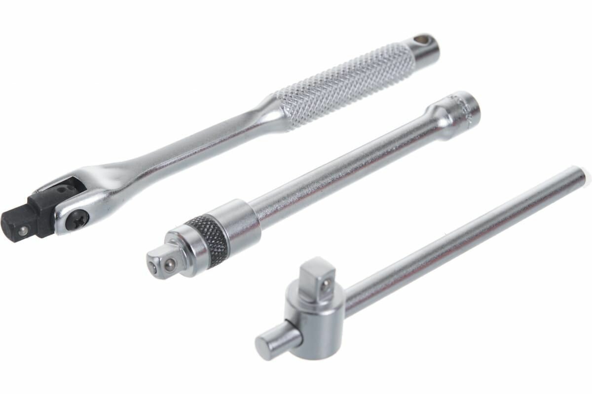 | Дополнительная информация | комплектация: торцевые головки , удлинители для головок – 65 и 115 мм., карданный шарнир, Т-образный вороток – 115 мм., шарнирный вороток – 150 мм, 1/4 " трещоточный ключ – 72 зубца; кейс |