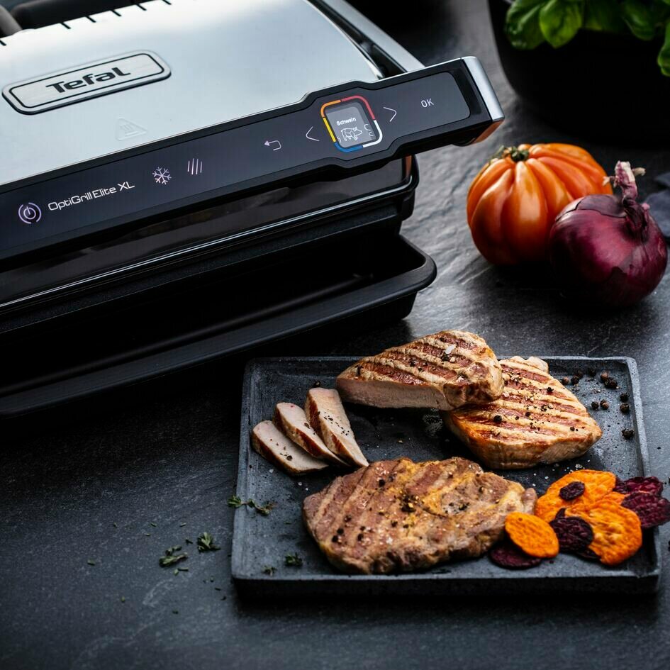 Умный электрогриль Tefal Optigrill Elite XL GC760D30 с датчиком определения толщины, 16 программ, функция суперкорочка, функция разморозки