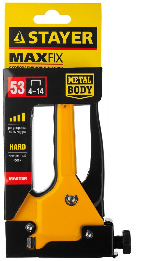 Степлер Max 53 с регулировкой силы удара, металлический корпус, для тонкой скобы тип 53 (4-14 мм), STAYER Master 31501
