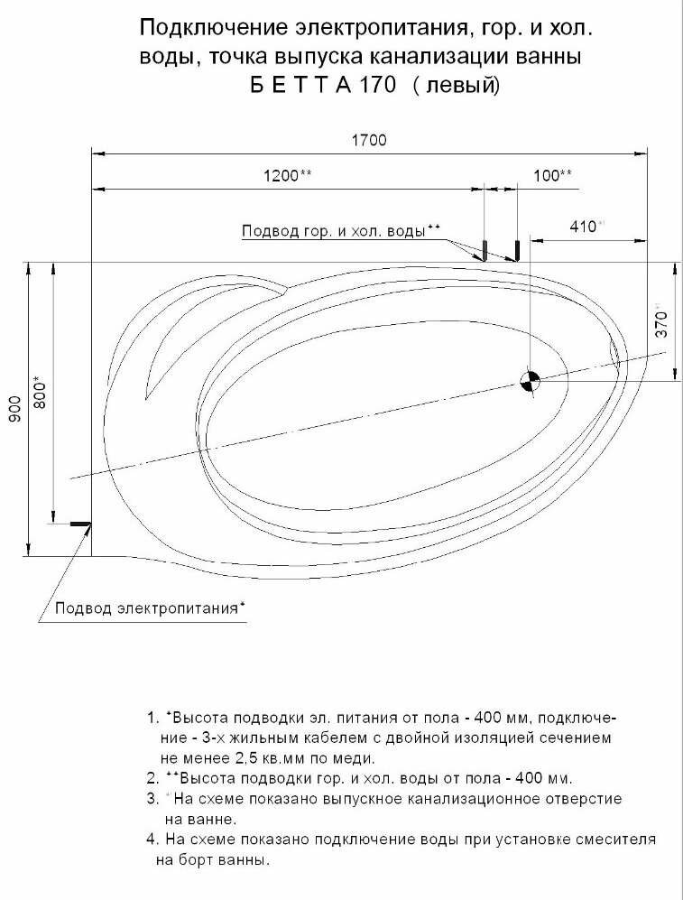 Акриловая ванна Aquatek Бетта 170x95 BET170-0000012 левая с гидромассажем