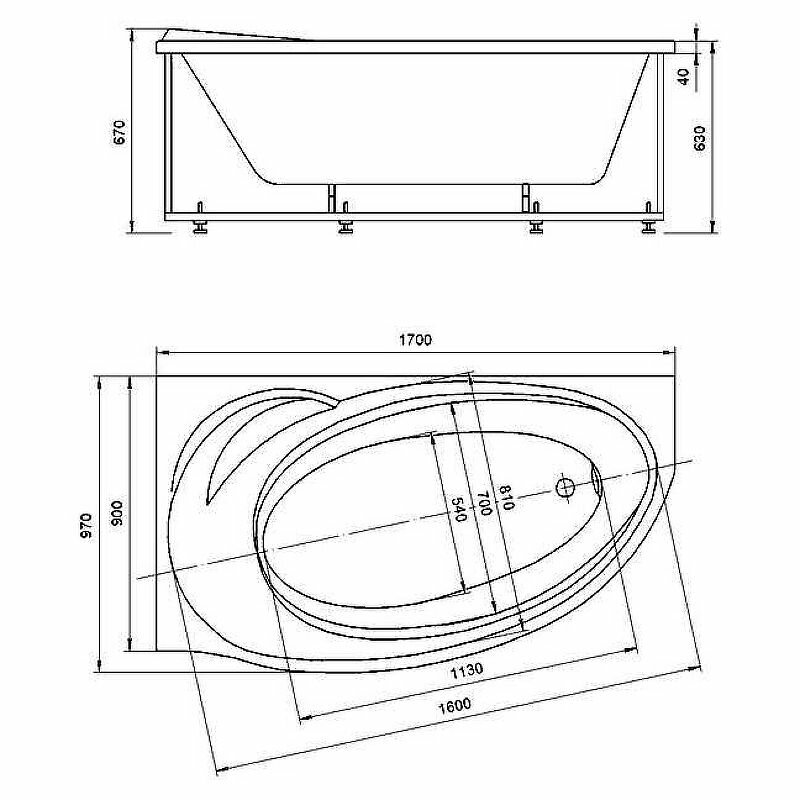 Акриловая ванна Aquatek Бетта 170x97 R BET170-0000011 с гидромассажем с фронтальной панелью с каркасом (разборный) со слив-переливом