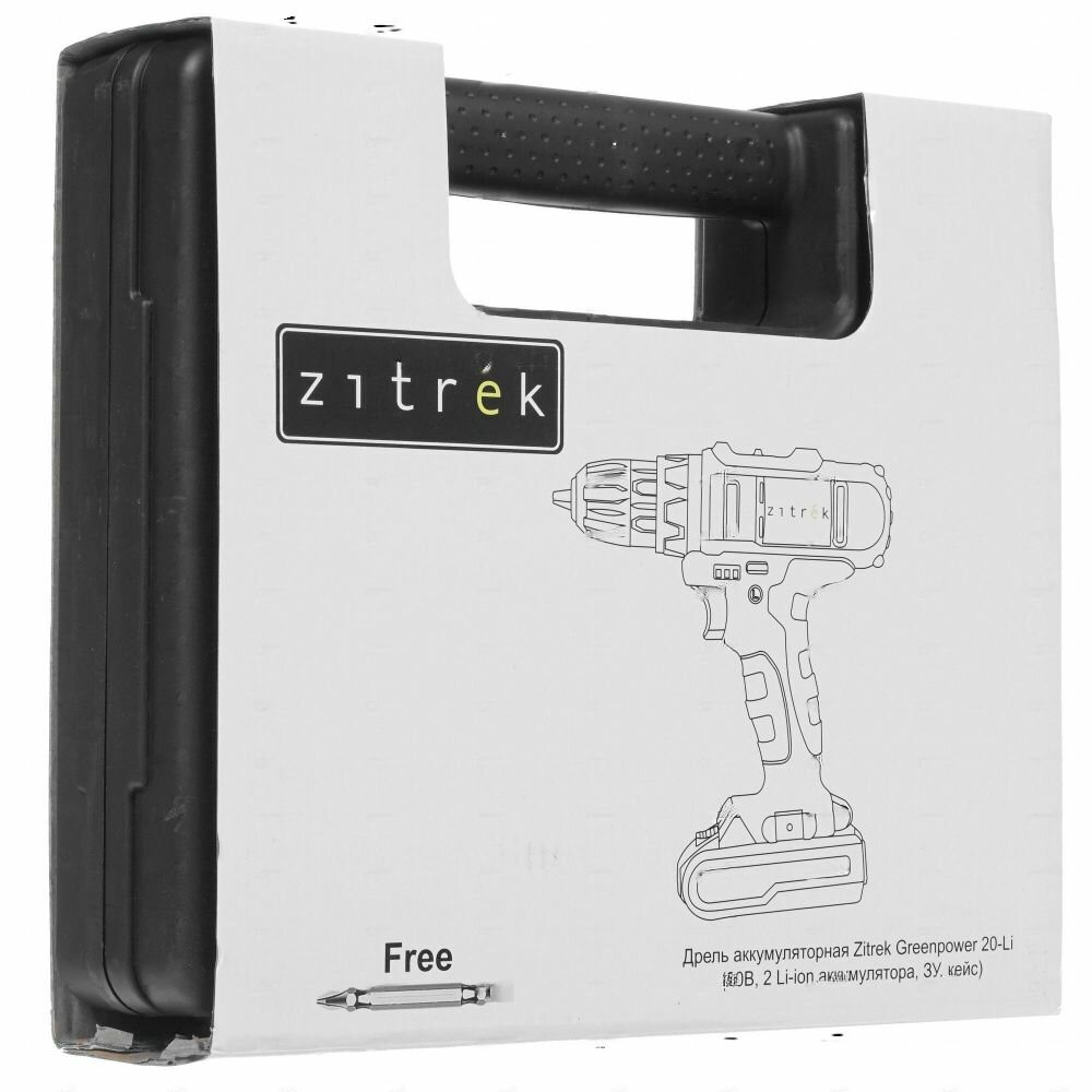Дрель аккумуляторная Zitrek Greenpower 20-Li (20В, Li-ion аккумулятор 2шт, ЗУ, кейс, бита)