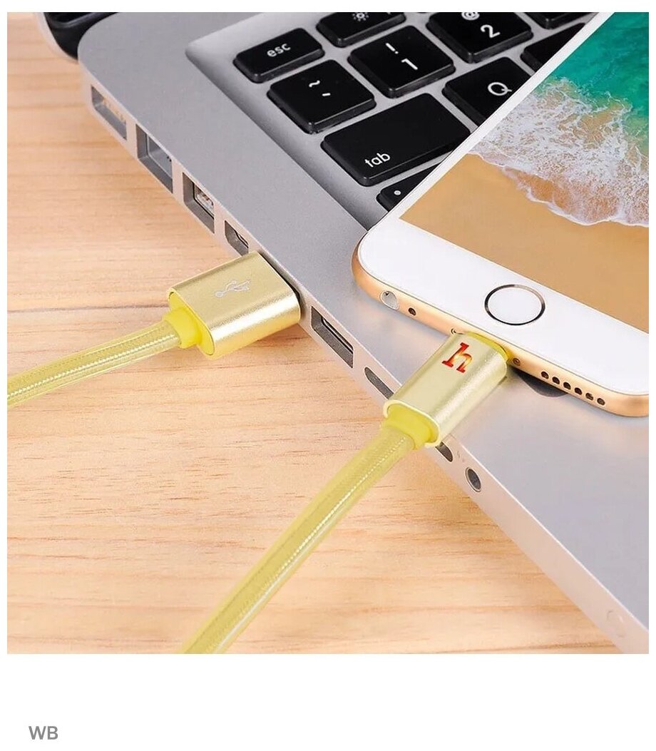 Кабель для айфон USB HOCO UPL12 Metal Jelly USB - Lightning, 2.1А, 2 м, золотой интересное: