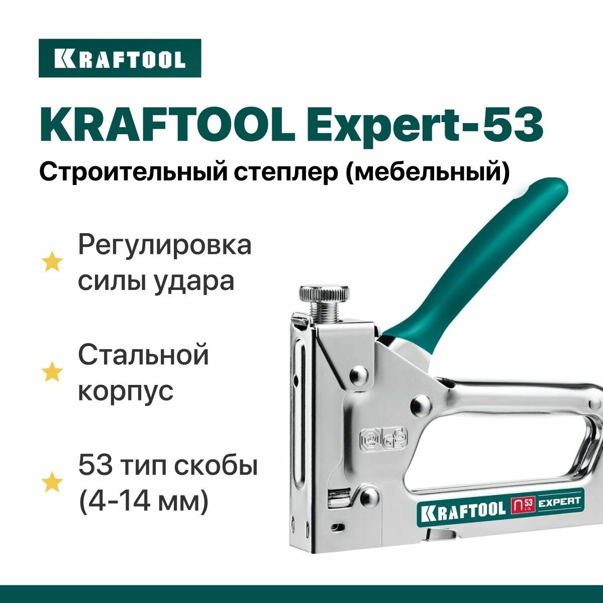Степлер строительный KRAFTOOL Expert-53 тип 53(4-14мм), Стальной компактный степлер (3187)